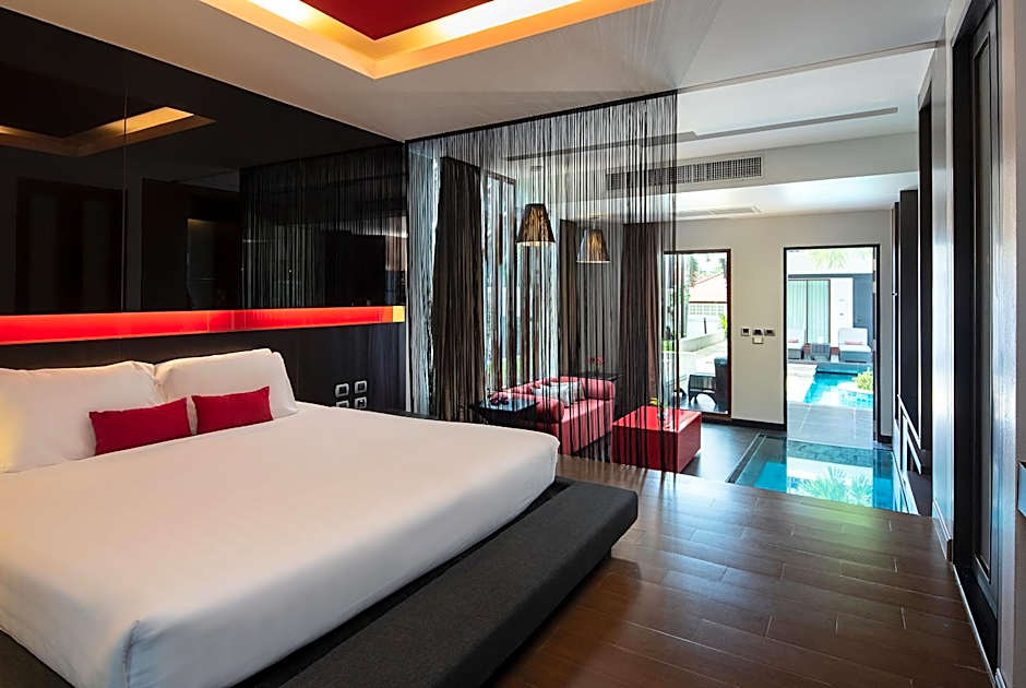 Room is located on the first floor with pool access.